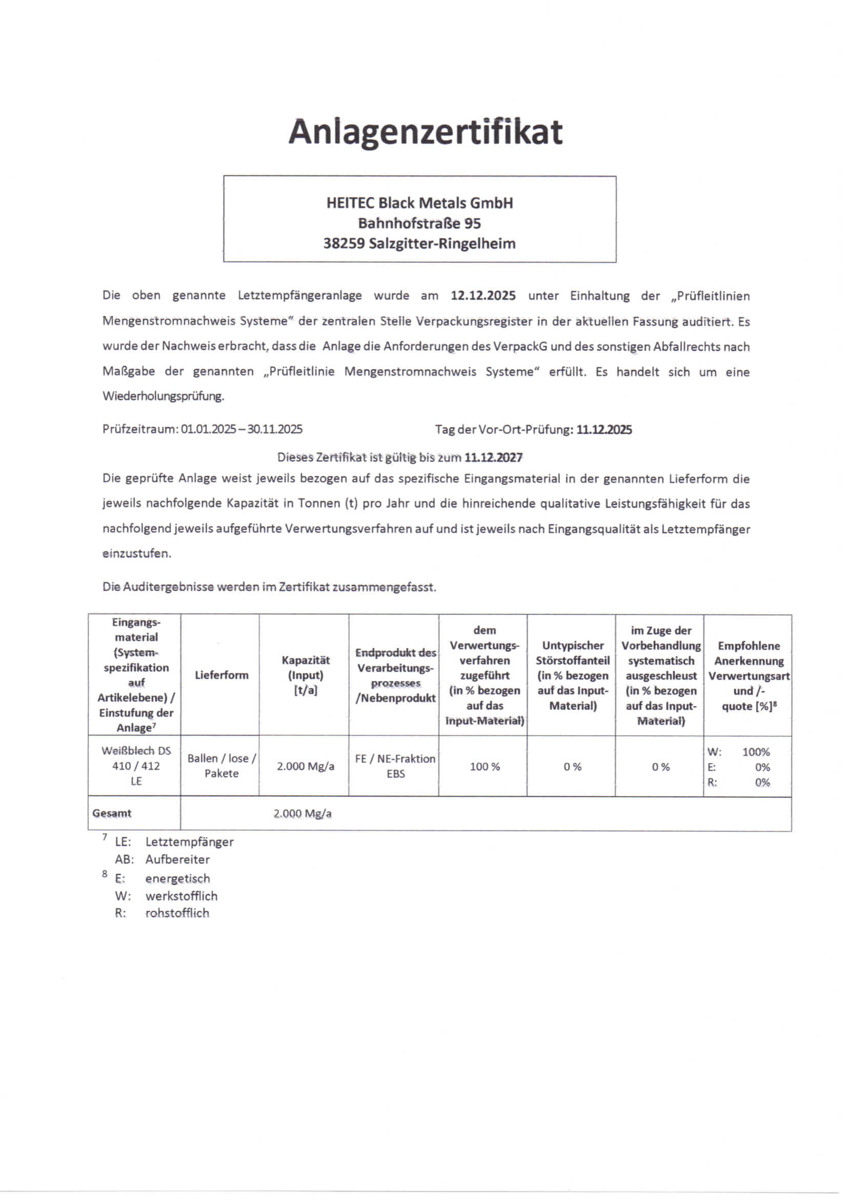 Mit der technischen Ausstattung und den abfallrechtlichen Möglichkeiten ist die HeiTec Black Metals GmbH für die Region ein kompetenter Entsorgungspartner.